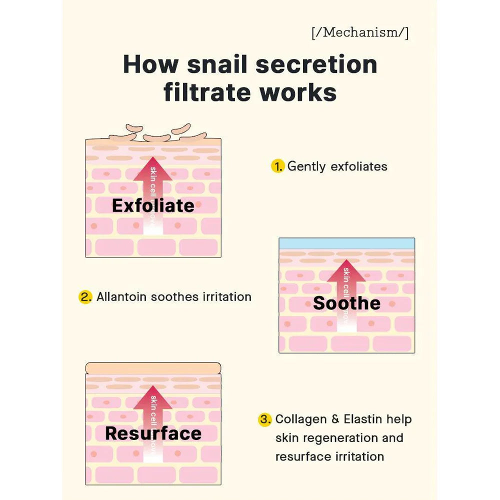 - 92% Snail Mucin : repairs damaged skin, enhances elasticity, and minimizes fine lines.