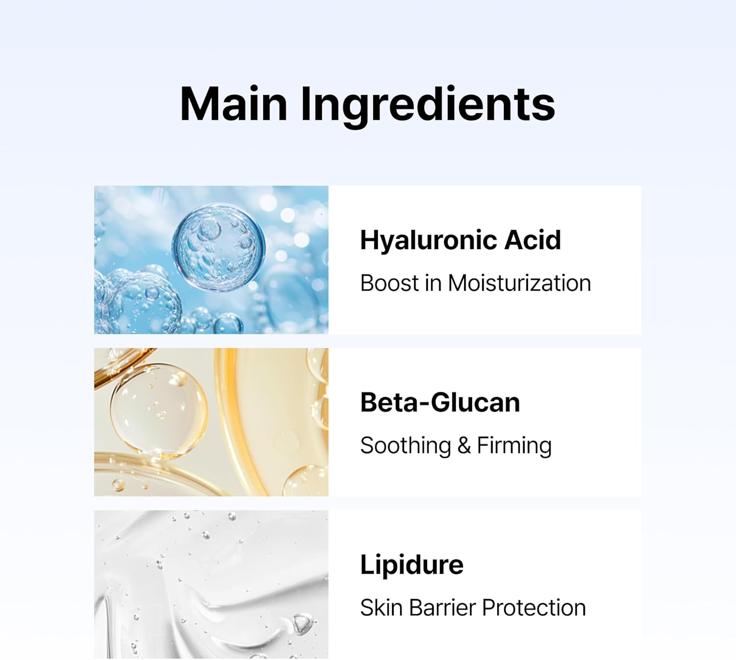 - Beta-Glucan – strengthens the skin barrier and boosts resilience.